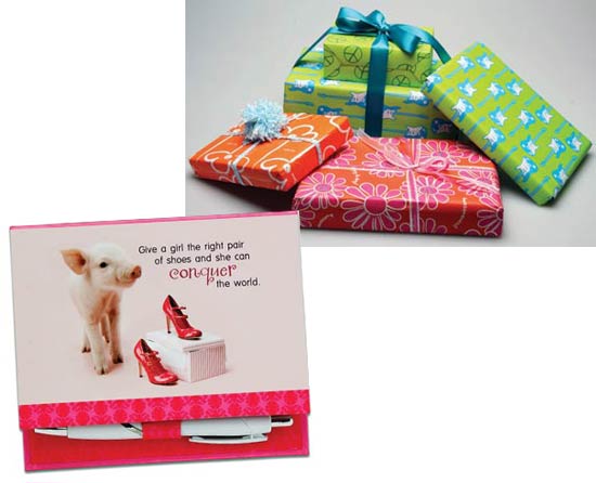 Also hot are Enclosure cards to tuck into a lunch box or present, such as Haute Papier’s tiny 2 ¾”x3 ½” enclosure notes, winner of best new product at the National Stationery Show last year. Gift wrap papers and gift embellishments are always strong sellers, and organizing products such as bright, patterned agendas, file folders and calendars join notepads as top personal buys and gift items.