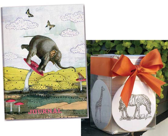 A parade of animals including giraffes, whales, and birds are walking all over stationery products with their whimsical appeal. Other popular motifs to look for include bicycles and mustaches.