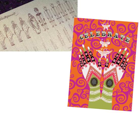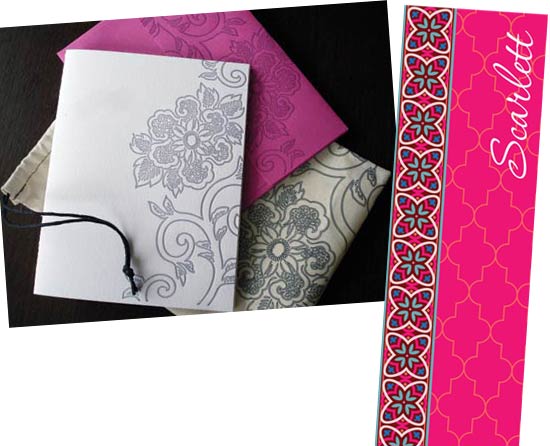 “We’re getting more requests for culture-specific designs, such as the vivid colors of Indian weddings,” says Heather van Breda, owner of Real Card Studio. Her company is putting out a new Indian collection called the ‘Cardamom package’ in their higher-end lines. An example is the henna-designed program designed to pair with the invitation.