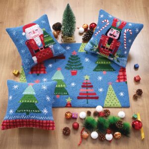 Some of Peking’s bestselling pillows include traditional Christmas elements as its base — think candy canes, nutcrackers and trees — but designed in blue chinoiserie or pale blue and pink colorways with bows. Other pillows have an extra dimension added with pom-poms and bows.