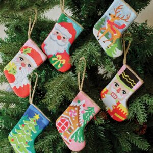 One of Peking’s newest launches is the 6-by-4.25-inch mini stockings. Designed with machine embroidery to look like a needlepoint pattern, it combines an older technique with updated artwork to create a modern look. The mini stockings can be hung on trees, used as décor or stuffed with a gift card.