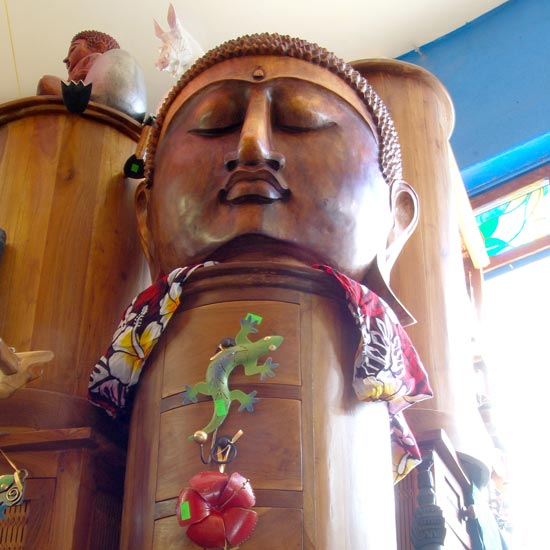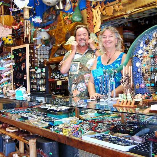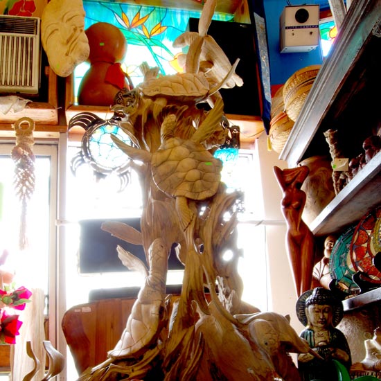 Peggy and Gary Budlong are Honolulu fixtures. The charming couple owned the popular Anna Banana’s bar and Go Bananas Kayaks before opening Peggy’s Picks, a unique gift shop specializing in local art and exquisite estate sale finds. Inspired by the beautiful offerings they found for sale while on their honeymoon in Bali, Peggy and Gary travel the world looking for unique art, crafts, and furniture to sell in their store.