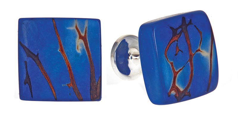 Tagua seeds, which originate from palm trees in the Amazon rainforest, are used to make these cufflinks and other jewelry at MUJUS. The vibrant colors come from all-natural dyes, says founder, Paola Delgado. “Designers are becoming more innovative and now realize that many natural materials look as good or better than traditional options,” Delgado says. “Customers love the story behind the designs and it helps them feel connected to each piece. In both a personal and business sense, green operating practices are a satisfying ethos.”