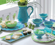 For example, she says that if a retailer chose to display a Melange color palette (including Apricot, Melon and Khaki), they could put a periwinkle-type blue plate with melon color stemware in a more natural shade. “For the consumer who really likes blue, but feels they need a new way to use it, the display would suggest to them that melon is an unexpected combination and very fresh,” Eiseman says. The colors could also be reversed in that the plate could be melon color offset by stemware in blue. “I don’t think it is good to be absolute in the placement of the color as there may not be merchandise to support it in just that way,” Eiseman says, “so an either-or scenario is best.”