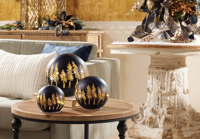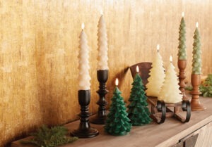 Melrose International’s new and bestselling pieces are meant to be placed throughout the home and be reused, such as its Globe Set or Santa & Tree Ekkolight, Blair said. Some of the wholesaler’s consistent sell- throughs are the LED Tree Set, Pine Cone Ornaments and the Tree Taper Candle Set.