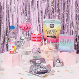 Sight: Wholesale Gift Experts’ Glitter Lab Cotton Candy Glitter Bombs. Drop one in a drink, and it not only changes color but sparkles. Guests always lean in, asking, “Wait, what just happened?”