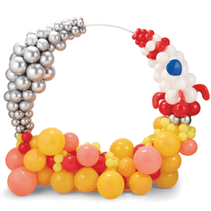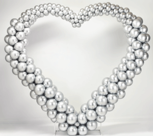 Create a polished, professional appearance through precise sizing of balloons to achieve a balloon piece with visual interest. The heart- shaped frame creates a timeless focal point that’s ideal for engagements, anniversaries and romantic photo opportunities.