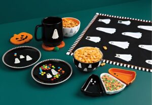 “We designed a charming ghost story for Halloween 2025 with our Danica Jubilee Kindred Spirits collection, featuring ghosts and their pet ghost cats,” said Erin Gibbs, senior design and trend development lead at Danica Brands. “A sweet and simple wax-resist ghost mug and plate set pull this trend into an elevated Halloween tabletop moment. Our Black Cat felted trivet and Boo Crew pumpkin felted coasters round out the festive décor and pair beautifully with our embroidered Hallows’ Eve cocktail napkins featuring patterned pumpkins and a sneaky black cat.”