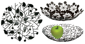 Recycled bicycle spokes are shaped and soldered to create these bowls. Words can include Peace, Love and other designs. Manufacturer Noah’s Ark is a member of the World Fair Trade Organization, and offers funding for raw materials, machines, and workshop repairs to 100-plus artisan groups in India. Fair trade practices help artisans and their families. A portion of the proceeds from Noah’s sales goes to Noah’s Handicrafts and Welfare society promoting artisan welfare, capacity building, childhood education, and social work.