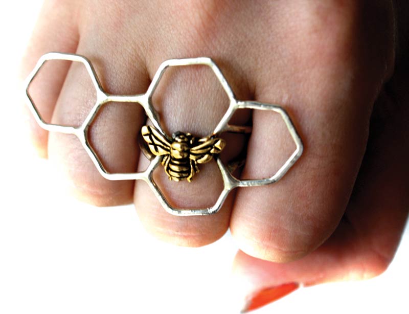 Alexander McQueen‘s Summer 2013 collection spearheaded the honeycomb trend on the fashion runways in a very literal way and the home décor and gift industries were already abuzz designing hexagonal products. Inspired by nature, honeycomb accents add a geometric touch to a traditional space, a fun repetitive pattern for scarves, dimensional glass and tabletop pieces or a bold angular jewelry statement.