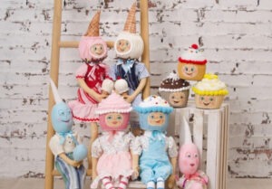 Step right up to the sweetest new release from Joe Spencer’s Gathered Traditions! Designed exclusively for Gallerie II, this whimsical collection takes its inspiration from classic carnival confections, bringing a delightful lineup of handcrafted dolls dressed as cotton candy, cupcakes, and ice cream treats. With playful pastel palettes, charming expressions, and nostalgic details — like sprinkle-topped hats and cone- shaped crowns, these characters are a cheerful celebration of summer fun. Perfect for collectors and seasonal displays alike.