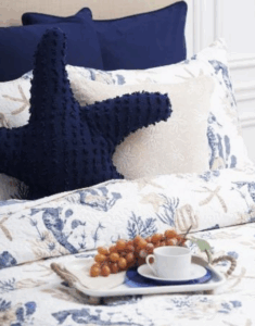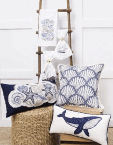 For a more timeless aesthetic, the Vintage Coastal collection offers nautical elegance with a palette of soft blue, white and natural hues. These easily adaptable pillows, table linens and kitchen towels bring a touch of maritime charm to any setting.
