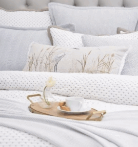 Reimagining classic looks, ELISABETH YORK continues to feature bedding pieces with global influences and exquisite craftsmanship. From hand-quilted coverlets and duvets; to hand-woven throws and intricately beaded pillows, each piece is finished with refined embellishments that elevate the entire collection. This season, ELISABETH YORK collaborated with Rightside Design and curated several bedding looks featuring the strikingly embroidered pillows for which Rightside Design is renowned. Thoughtfully designed in timeless neutrals and layered textures, ELISABETH YORK creates a sense of quiet luxury with sophisticated looks that introduce an unexpected mix of details.