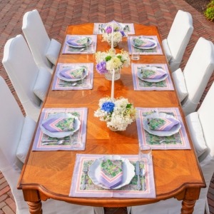 EVELYN & KATE was founded by lifelong friends and professional artists, Evelyn Lafave McCarthy and Kate Geraci as a result of a gift. After Kate hosted Evelyn for a solo exhibition at Amoré Gallery, Evelyn created patterns based on both of their original paintings and printed napkins and placemats as a unique thank you gift for Kate. That gesture blossomed into a full collection of canvas and quilted totes, silk scarves, tabletop linens and decorative pillows — each design drawn from their artwork and crafted to bring color and joy into everyday living.