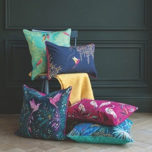 - The Chelsea Collection: Sara Miller London’s signature look, showcasing bold jewel-tone colors and array of exotic birds, blossom and foliage to make an everyday statement.